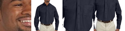 - Signature horn-style buttons with Harriton logo and contrast thread