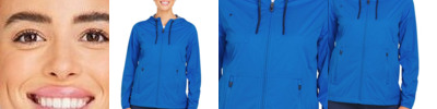 1 oz./yd² (US), 1.7 oz./L yd (CA), 100% recycled nylon Water-repellent Three-piece hood with brim detail Shock cord at hood and hem Self-fabric chin guard Contrast center front reverse coil zipper with auto lock slider and toggle Lower zippered pockets with zipper garages Packable style into self-pocket bag Partial encased elastic cuffs