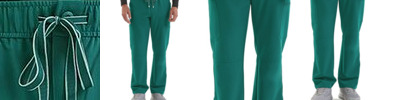 - Waistband, drawcord, and mock fly