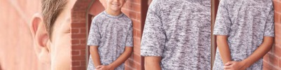 - 4.1-ounce, 100% polyester yarn-dyed jersey with PosiCharge technology (Electric Heather)